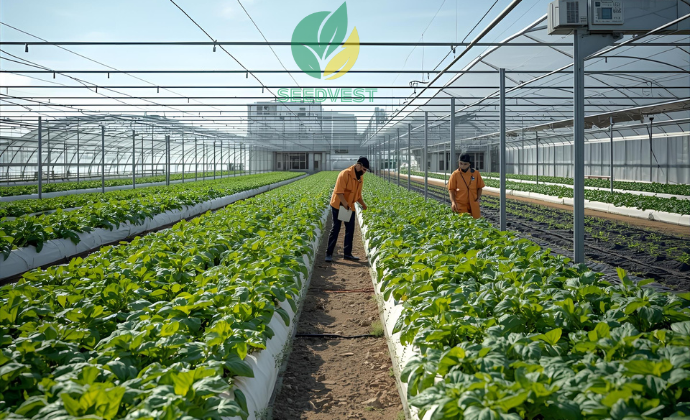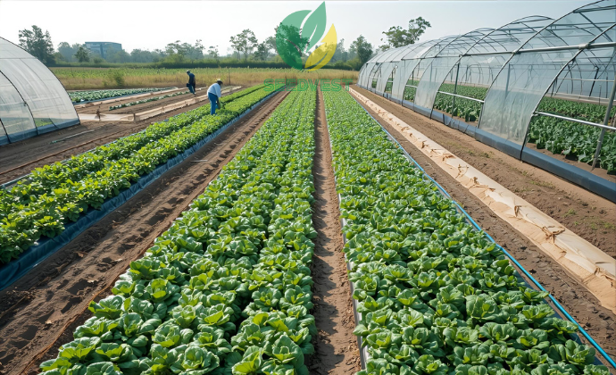 تجمع المزرعة بين بيوت زجاجية ذات بيئة محكمة التحكم وحقول مفتوحة لتحقيق أعلى إنتاجية وأسرع دورات حصاد.