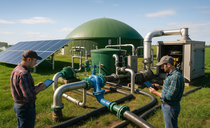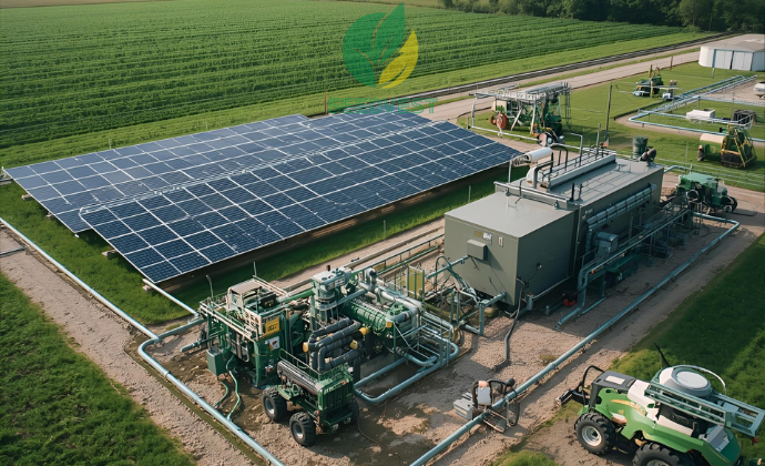 يهدف هذا المشروع إلى إنشاء منصة طاقة متجددة متكاملة داخل المزارع تجمع بين أنظمة الطاقة الشمسية الكهروضوئية (Solar PV) ومنشأة الهضم اللاهوائي (Anaerobic Digestion – AD) ووحدة توليد طاقة حرارية وكهربائية مشتركة (CHP).