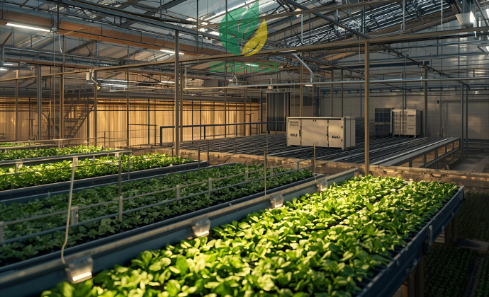 يُدمج النظام مع بطارية ليثيوم-أيون لتخزين الطاقة بسعة 1 ميغاواط/ساعة (1 MWh)، لتزويد مرافق الزراعة بالطاقة اللازمة لتشغيل: