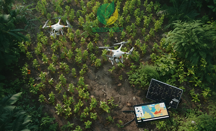 الزراعة بمساعدة الطائرات بدون طيار (Drones) لتغطية المساحات بكفاءة وتسريع عملية الغرس.